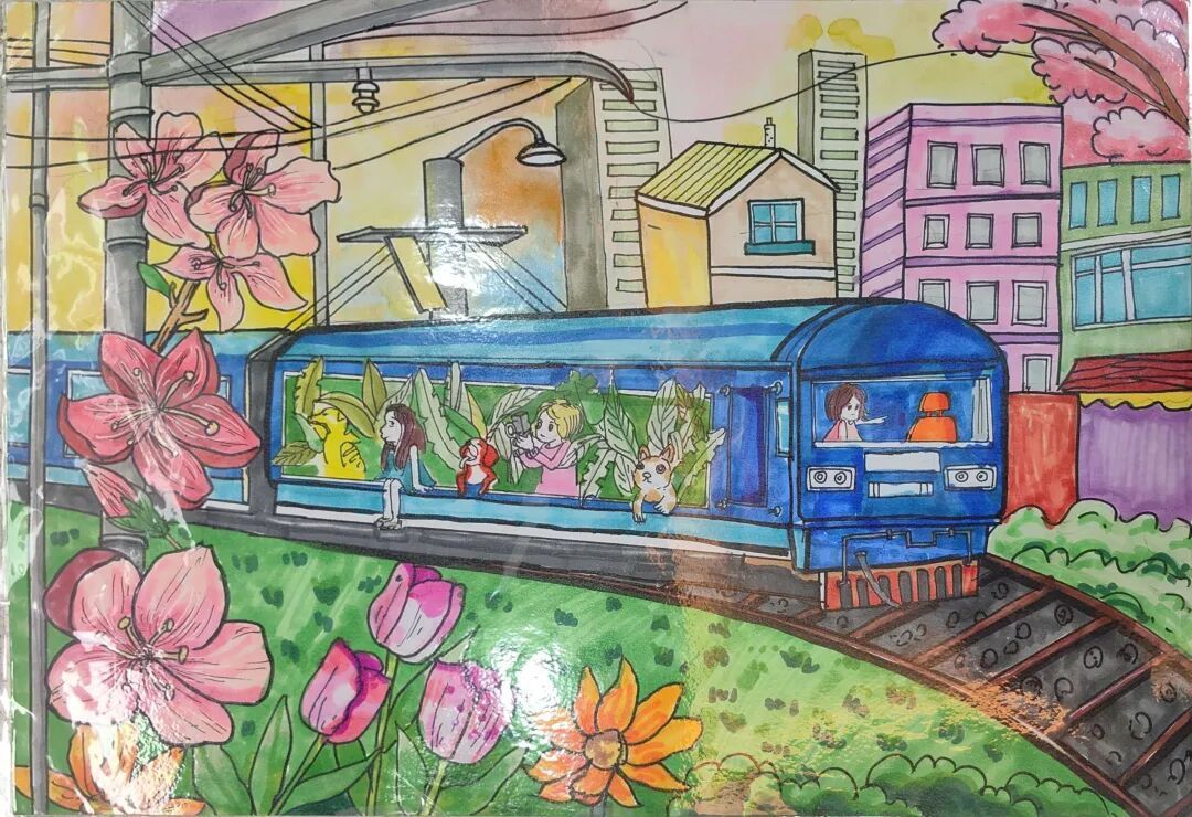 当我回到家时,我迫不及待地在我新买的素描本上画了今天的冒险经历。翩翩起舞的油菜花,打喷嚏的山峦,让我感动的老车站……晚上,我做了一个香甜的梦。我梦见我的小床变成了一辆色彩缤纷的火车,“咔嗒”一声,我继续前往妈妈的故事里。